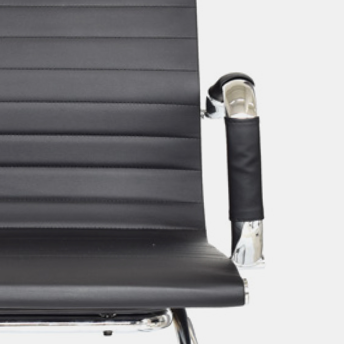 Brazos fijos cromados recubiertos en cuerina.