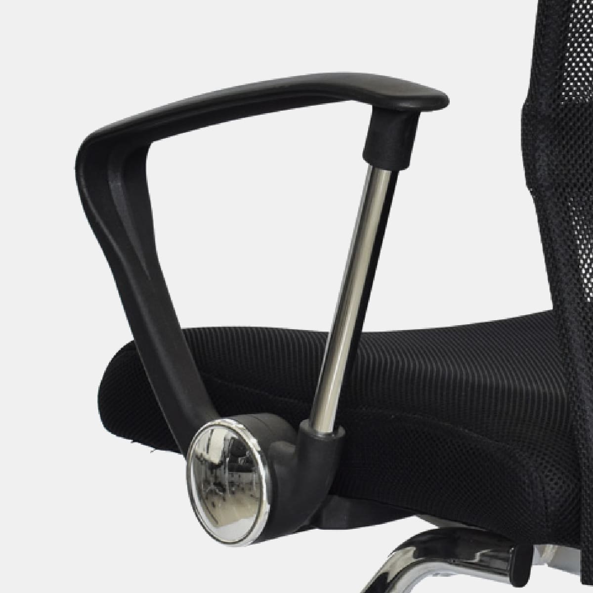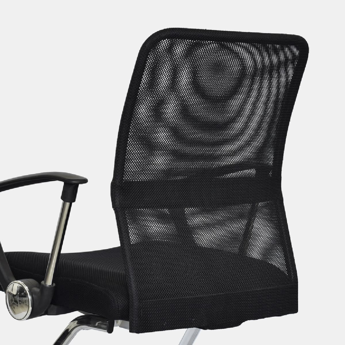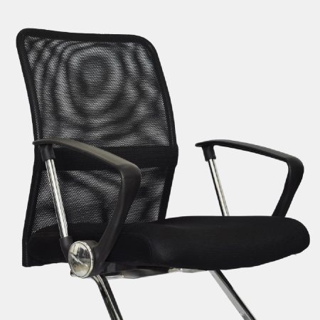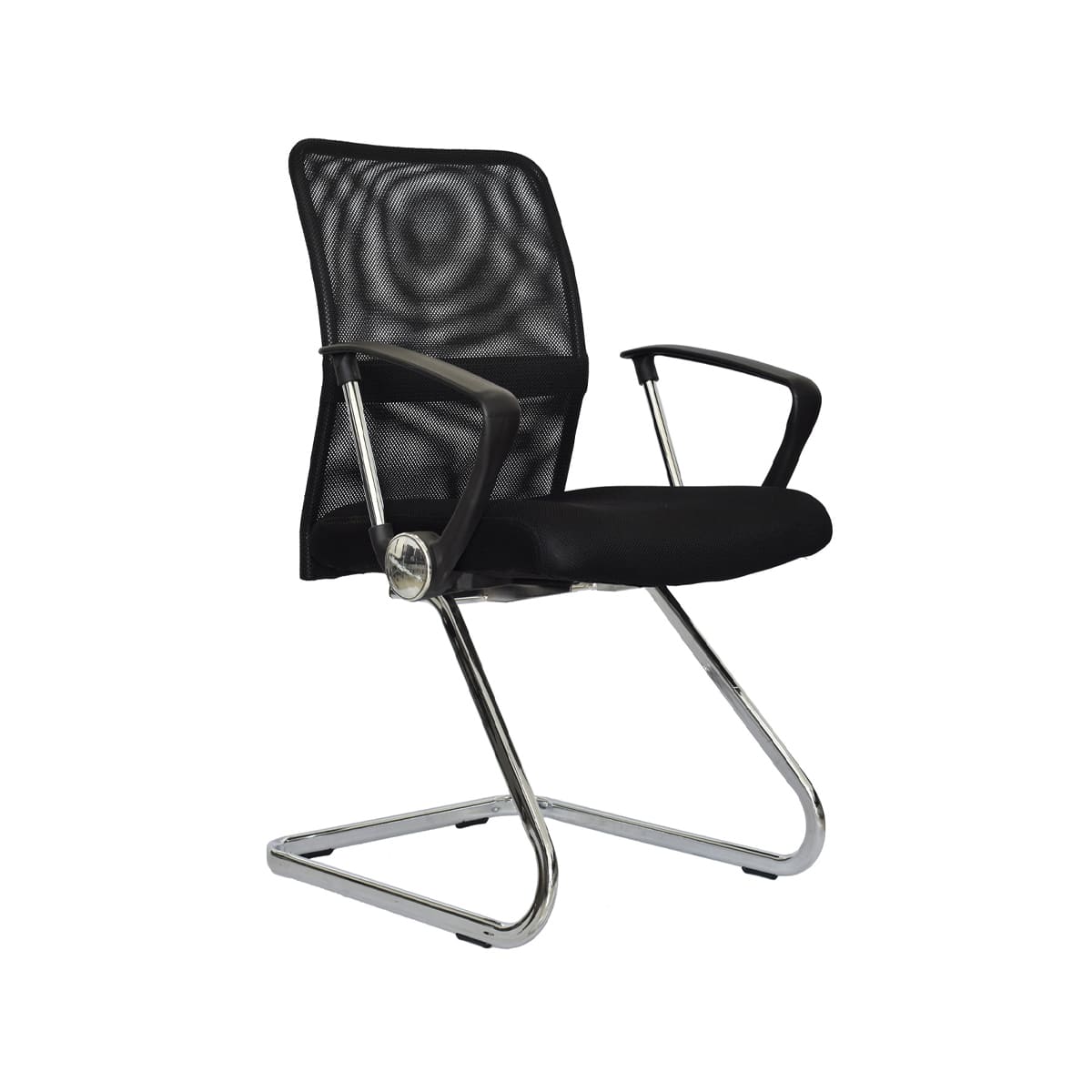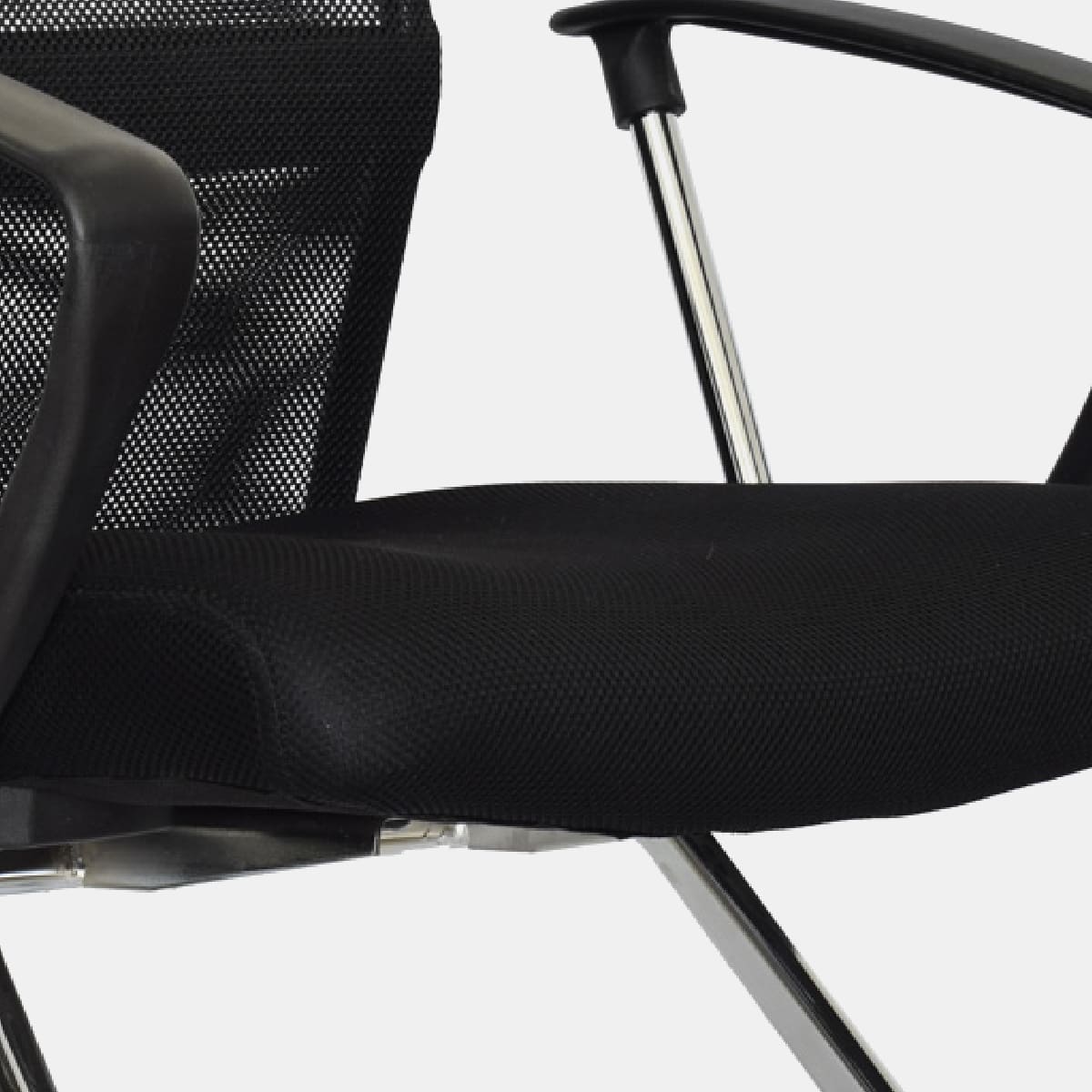 • Espaldar en malla • Brazos con estructura cromada y polipropileno, fijos • Asiento con tapizado textil • Base cromada, tipo cantilever