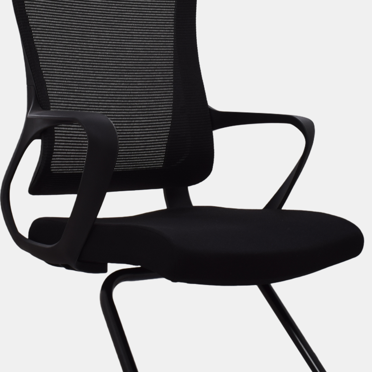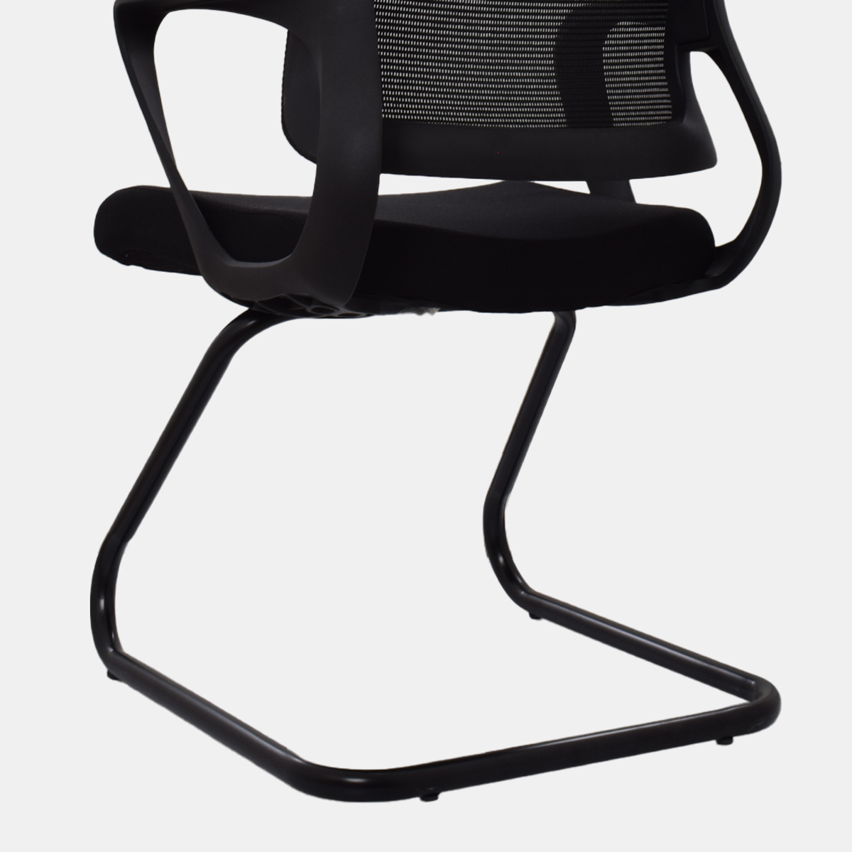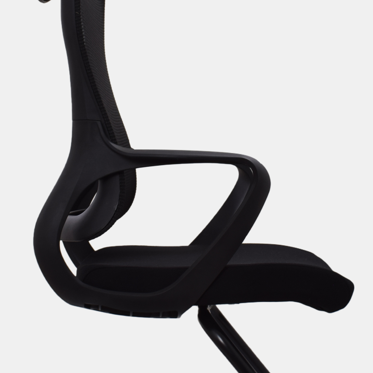 • Espaldar en malla mixta • Brazos en polipropileno, fijos • Asiento en espuma laminada, con tapizado textil • Estructura metálica tipo cantilever con pintura electrostática negra