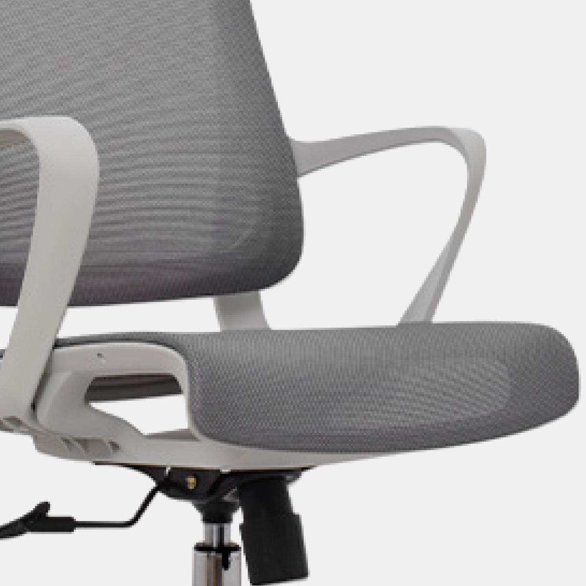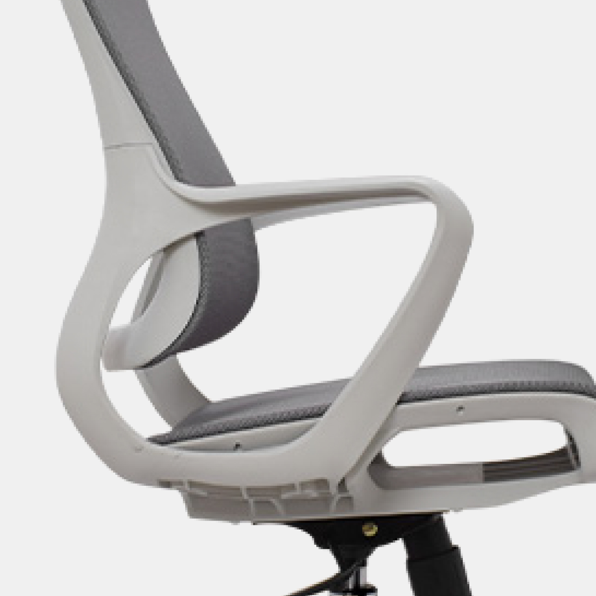 • Espaldar en malla mixta • Brazos en polipropileno, fijos • Asiento en malla mixta • Mecanismo basculante • Base nylon 320 mm • Ruedas nylon 50 mm