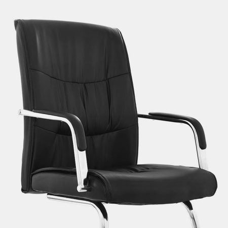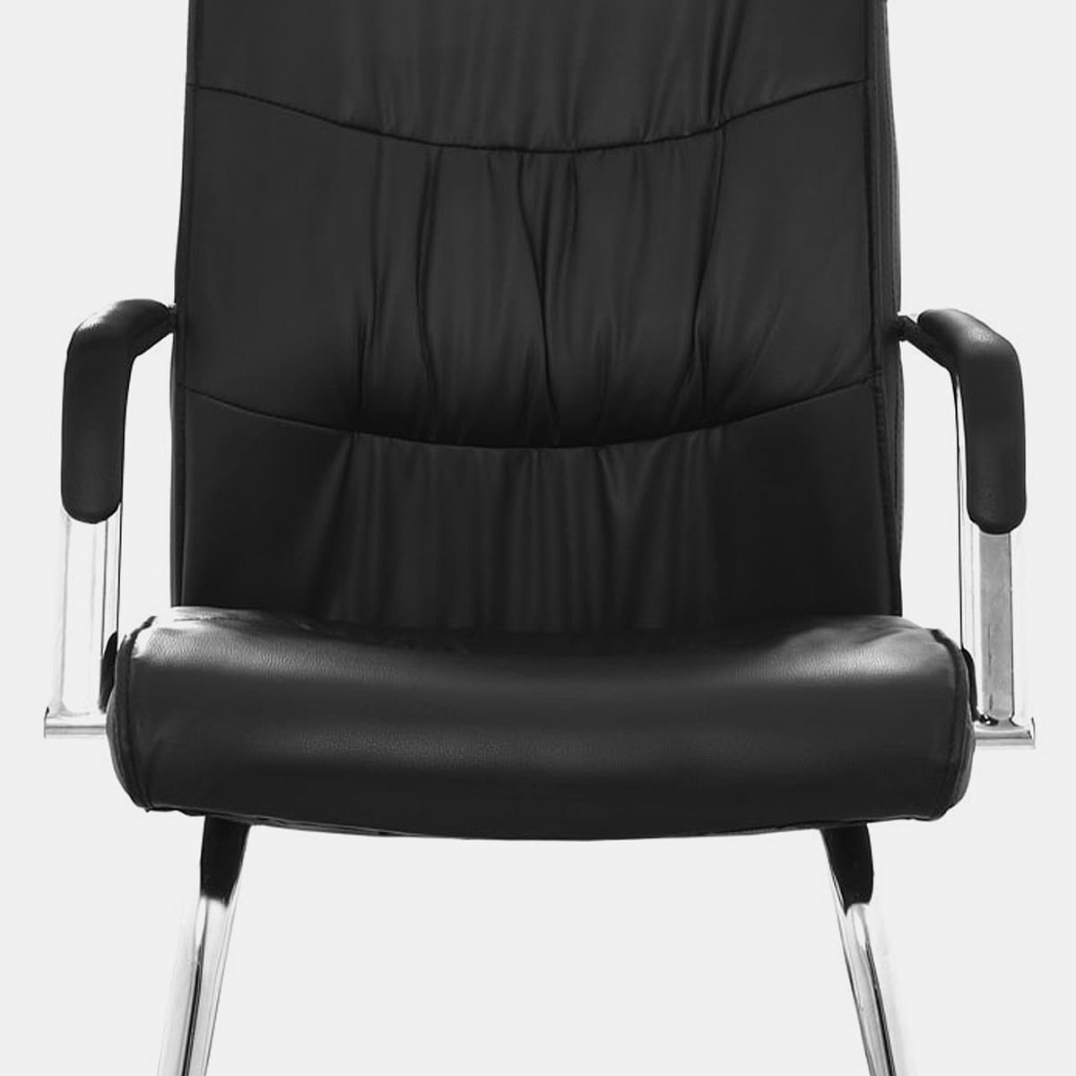 • Espaldar en cuero sintético • Brazos cromados con PAD en cuero sintético, fijos • Asiento en cuero sintético • Estructura cromada, tipo cantilever
