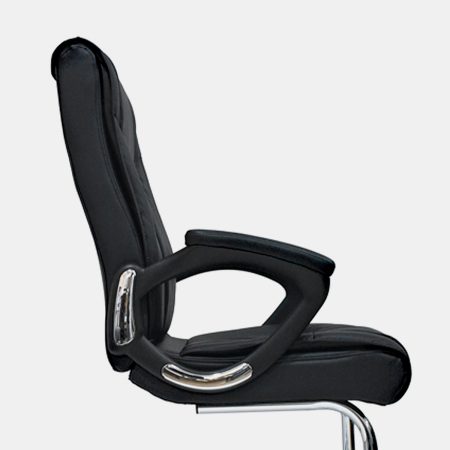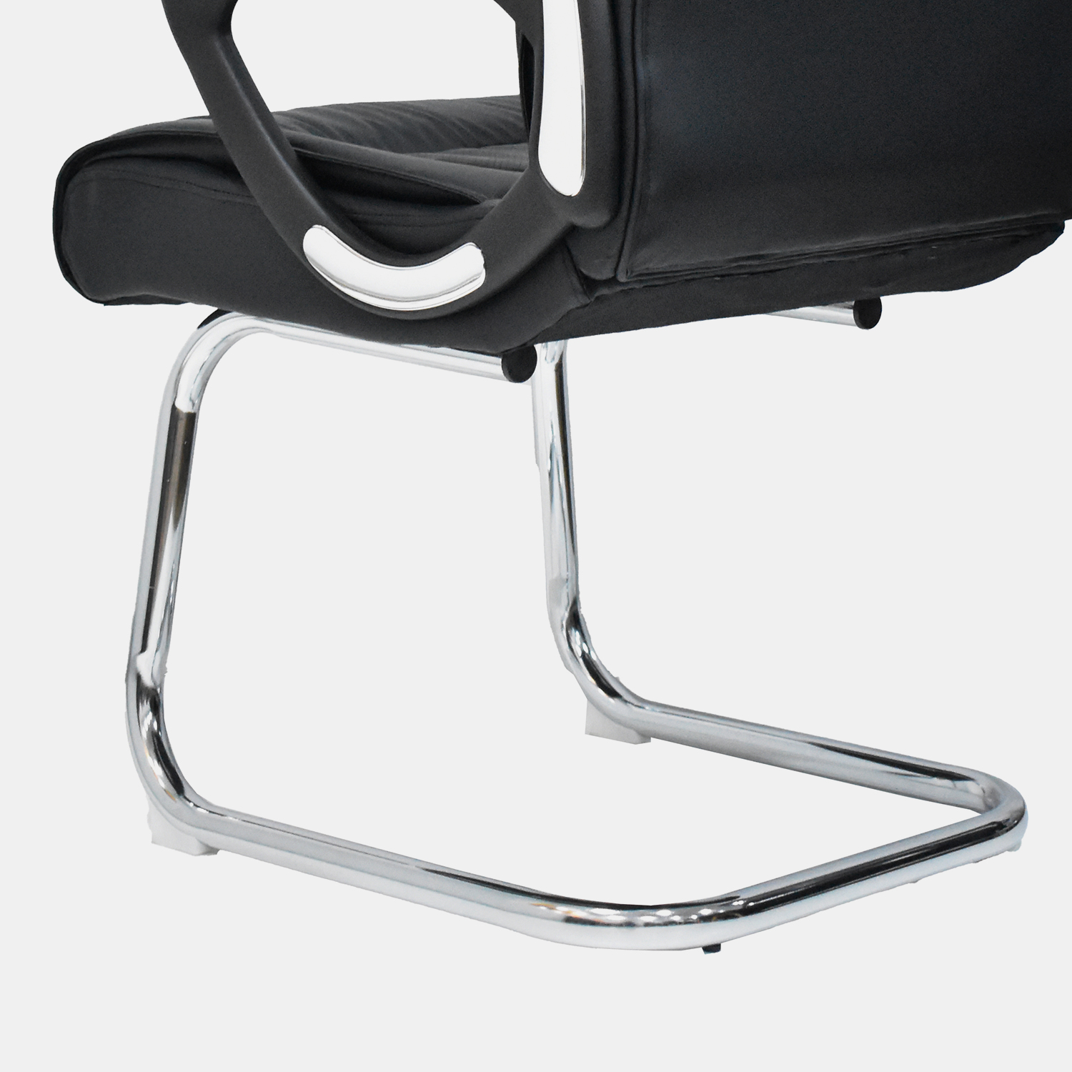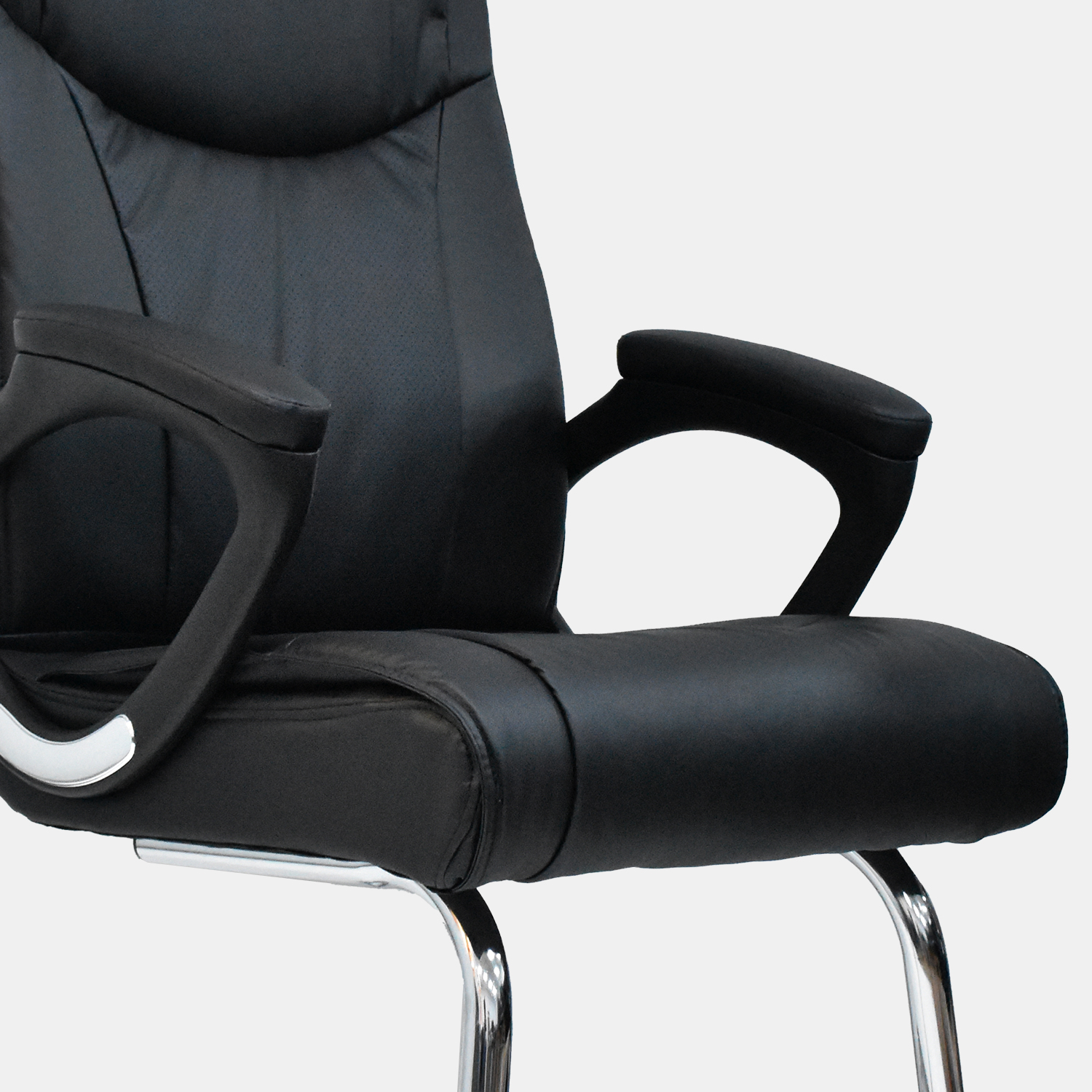 • Espaldar en cuero sintético • Brazos en polipropileno con PAD en cuero sintético, fijos • Asiento en espuma laminada con cuero sintético • Estructura metálica cromada tipo cantilever